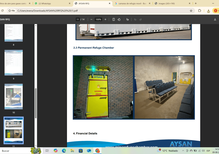 Cámaras de Refugio Minero, seguridad Subterránea.